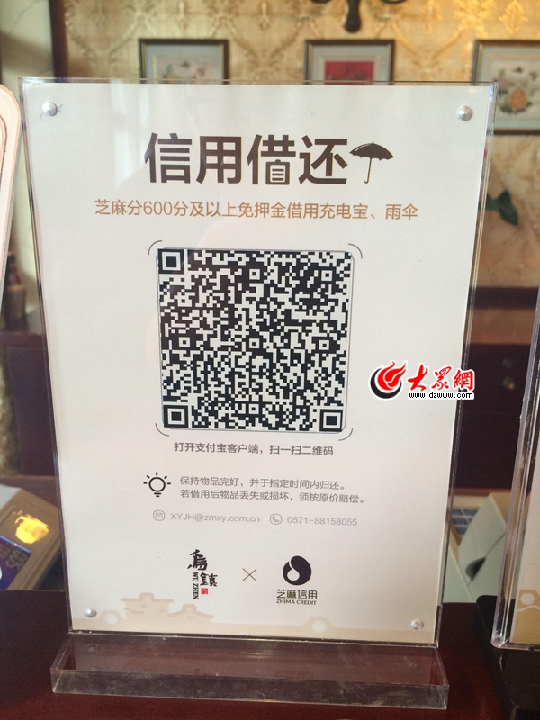 枕水酒店工作人員告訴大眾網記者,烏鎮(zhèn)景區(qū)有100個信用借還點,有1000把雨傘、500個充電寶出借。每個信用租還點都有一個二維碼,只要打開支付寶掃描二維碼,2步即完成租借。據了解,租雨傘和充電寶,只是烏鎮(zhèn)“信用租還”的第一步。以后,嬰兒車、拐杖、輪椅等都將可以信用借還。同時部分酒店,也將實現免押金信用入住,免去了交押金、查房等繁瑣手續(xù)。