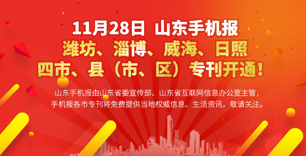 大眾網(wǎng)11月28日訊(大眾網(wǎng)記者 張瑞禎)11月28日,山東手機(jī)報(bào)濰坊、淄博、威海、日照四市、縣(市、區(qū))專刊同步開(kāi)通。加上此前已開(kāi)通的煙臺(tái)、濟(jì)寧、濱州、東營(yíng)、青島,全省已有9個(gè)地市陸續(xù)開(kāi)通山東手機(jī)報(bào)市縣專刊。至此,山東手機(jī)報(bào)總用戶數(shù)已超過(guò)2000萬(wàn)。