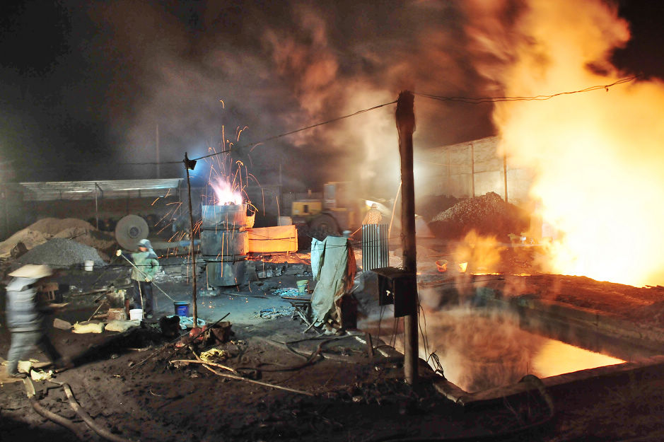 3月16日晚10時(shí),記者暗訪時(shí)發(fā)現(xiàn),在濟(jì)南歷城區(qū)唐王鎮(zhèn)小徐家莊村東北角一處非法煉鋼點(diǎn),六七名工人正忙活著,爐火苗躥出很高,染紅了夜空,空氣中彌漫著嗆人的煙灰。附近還有多座規(guī)模大小不同的非法冶煉廠、塑料小作坊趁著黑夜在生產(chǎn)。向有關(guān)部門舉報(bào)后,18日上午,歷城區(qū)環(huán)保局、公安局、城管等執(zhí)法部門聯(lián)合執(zhí)法,取締了這家煉鋼廠和另一處非法煉鋁窩點(diǎn)。齊魯晚報(bào) 作者:張中 編輯:王娟