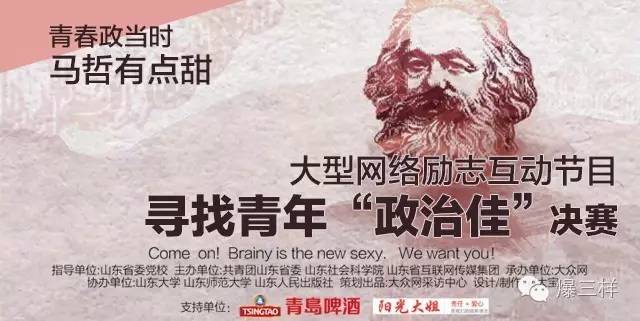尋找青年“政治佳”節(jié)目由山東省委黨校指導(dǎo),共青團(tuán)山東省委、山東社會(huì)科學(xué)院和山東互聯(lián)網(wǎng)傳媒集團(tuán)主辦,大眾網(wǎng)承辦,山東大學(xué)、山東師范大學(xué)和山東人民出版社協(xié)辦。節(jié)目旨在發(fā)現(xiàn)一批青年理論學(xué)習(xí)骨干,培養(yǎng)一支理論宣傳的青年主力軍,創(chuàng)作一批鮮活的理論傳播精品。