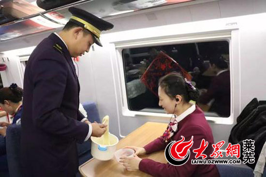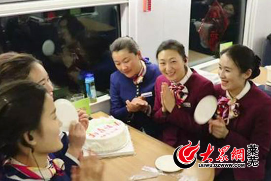 大眾網(wǎng)萊蕪2月14日訊(記者 亓秀寶)張超冉,是一名普通的列車(chē)員,她擔(dān)當(dāng)列車(chē)員已有三年,猴年除夕她正在飛速的列車(chē)上值班,而這一天恰巧也是她的生日。不能回家陪家人過(guò)年,也不能和家人一同度過(guò)生日,但是在這一天,張超冉得到了意外的生日禮物,整個(gè)高鐵車(chē)廂一路幸福滿(mǎn)載。