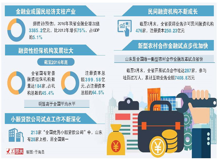 這是山東金融業(yè)保持持續(xù)健康發(fā)展良好勢頭的一個縮影。近年來,山東持續(xù)加大金融改革力度,提升金融服務(wù)水平,優(yōu)化金融發(fā)展環(huán)境。據(jù)統(tǒng)計(預(yù)估),2016年我省金融業(yè)增加值3385.2億元,比2012年增長了75%,占GDP的5.1%,金融業(yè)發(fā)展成為國民經(jīng)濟支柱產(chǎn)業(yè)。