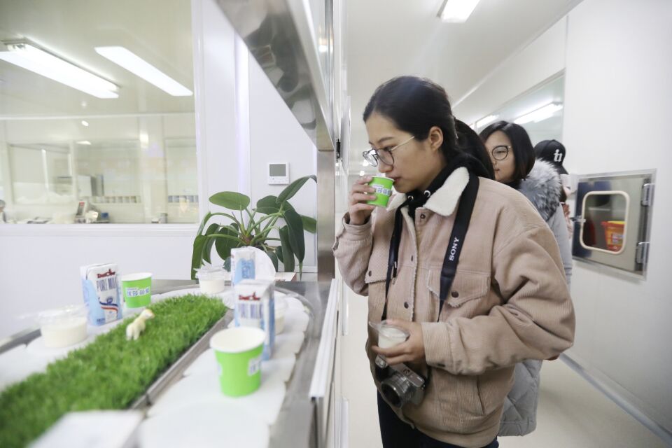 采訪團記者品嘗圣元營養食品有限公司的產品。