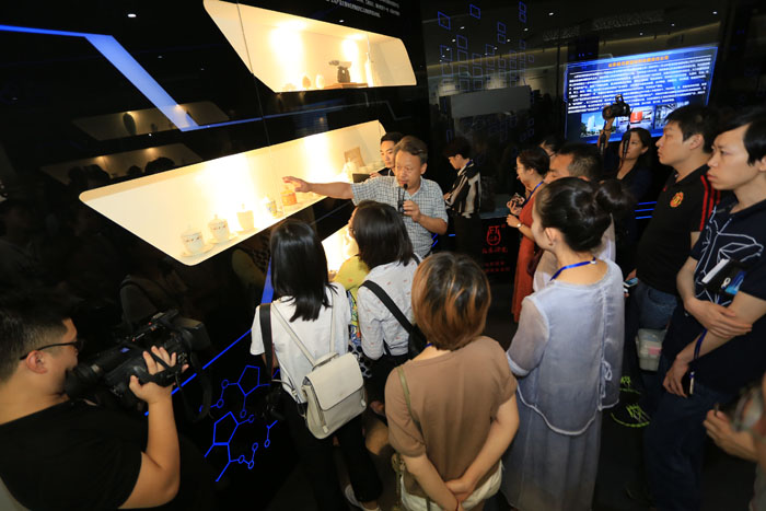 采訪團(tuán)正在參觀新材料城展示中心展品。