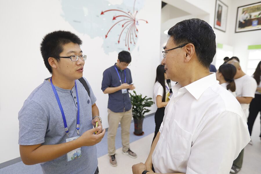東海藥業董事長崔云龍向采訪團記者講述東海與袁隆平院士的故事。
