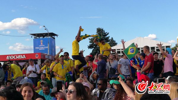 特派記者王封攝影報道 當(dāng)?shù)貢r間下午五六點,正是太陽毒辣的時候。在世界杯莫斯科球迷廣場,巴西與墨西哥球迷觀看比賽。