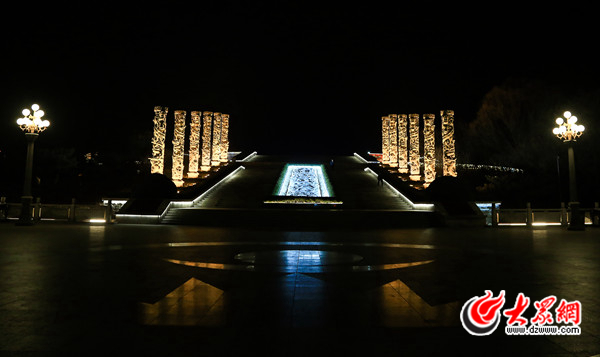 圖為泰山東街一角,雕刻的巨龍在燈光的照射下栩栩如生。