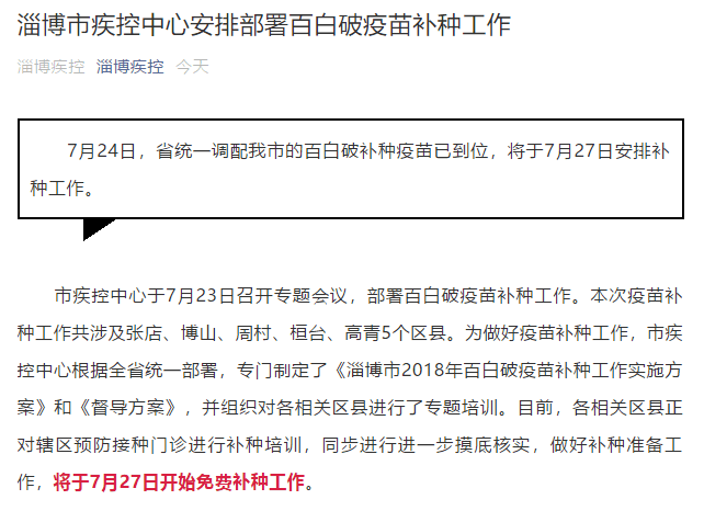 針對媒體、社會和家長們比較關(guān)注的長春長生效價不合格百白破疫苗和狂犬疫苗事件,7月24日,淄博市疾病預(yù)防控制中心作出說明: [詳細(xì)]