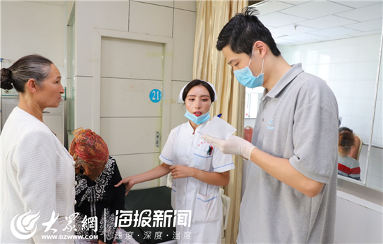 山東大學第二醫院眼科醫生魏超與患者和家屬溝通。(仇晶 攝)