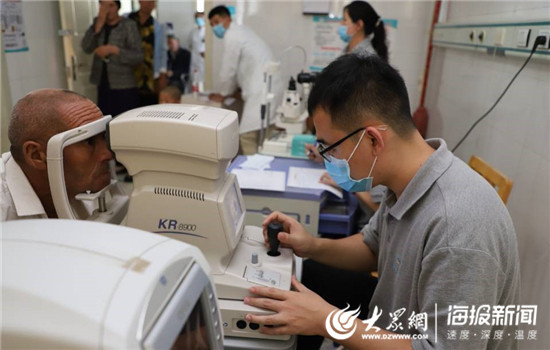 山東大學第二醫院眼科醫生王合雷對患者進行仔細篩查。(仇晶 攝)