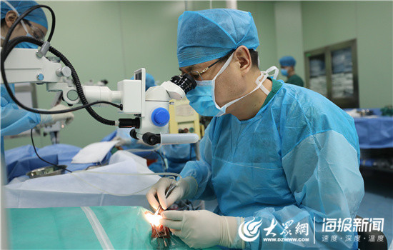 2017年,山東援疆醫生、山東大學第二醫院眼科主任張晗教授正在開展白內障手術。