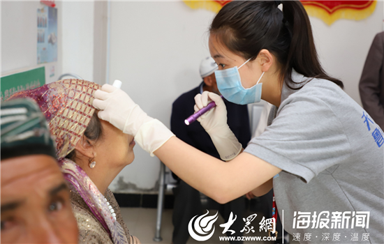 山東大學(xué)第二醫(yī)院眼科醫(yī)生魏超對當?shù)鼗颊哌M行檢查。(仇晶 攝)