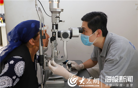 山東大學(xué)第二醫(yī)院眼科醫(yī)生魏超對(duì)當(dāng)?shù)鼗颊哌M(jìn)行檢查。(仇晶 攝)