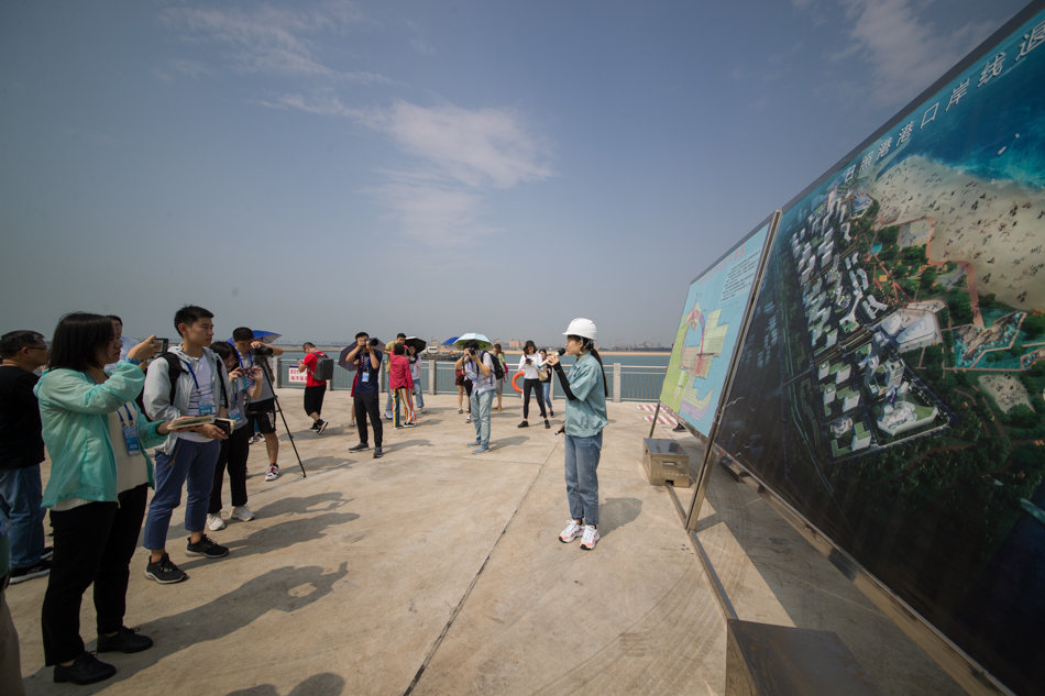 7月15日,“我愛這片藍(lán)色的國土”網(wǎng)絡(luò)主題活動(dòng)采訪團(tuán),來到日照海龍灣項(xiàng)目施工現(xiàn)場(chǎng),這里的退港還海修復(fù)整治工程剛剛完工。站在附近的日照財(cái)富中心高層的觀光平臺(tái)上俯瞰,從萬平口景區(qū)到燈塔風(fēng)景區(qū)再到海龍灣,城區(qū)沿線的碧海藍(lán)天金沙灘連成一片,宛如城市的一條“金腰帶”。