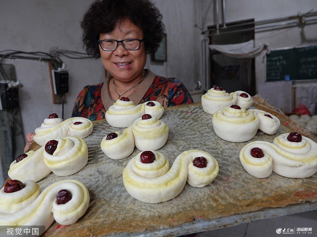 9月11日,山西運城,新絳縣澤掌村村民在加緊蒸月餅饃迎中秋。