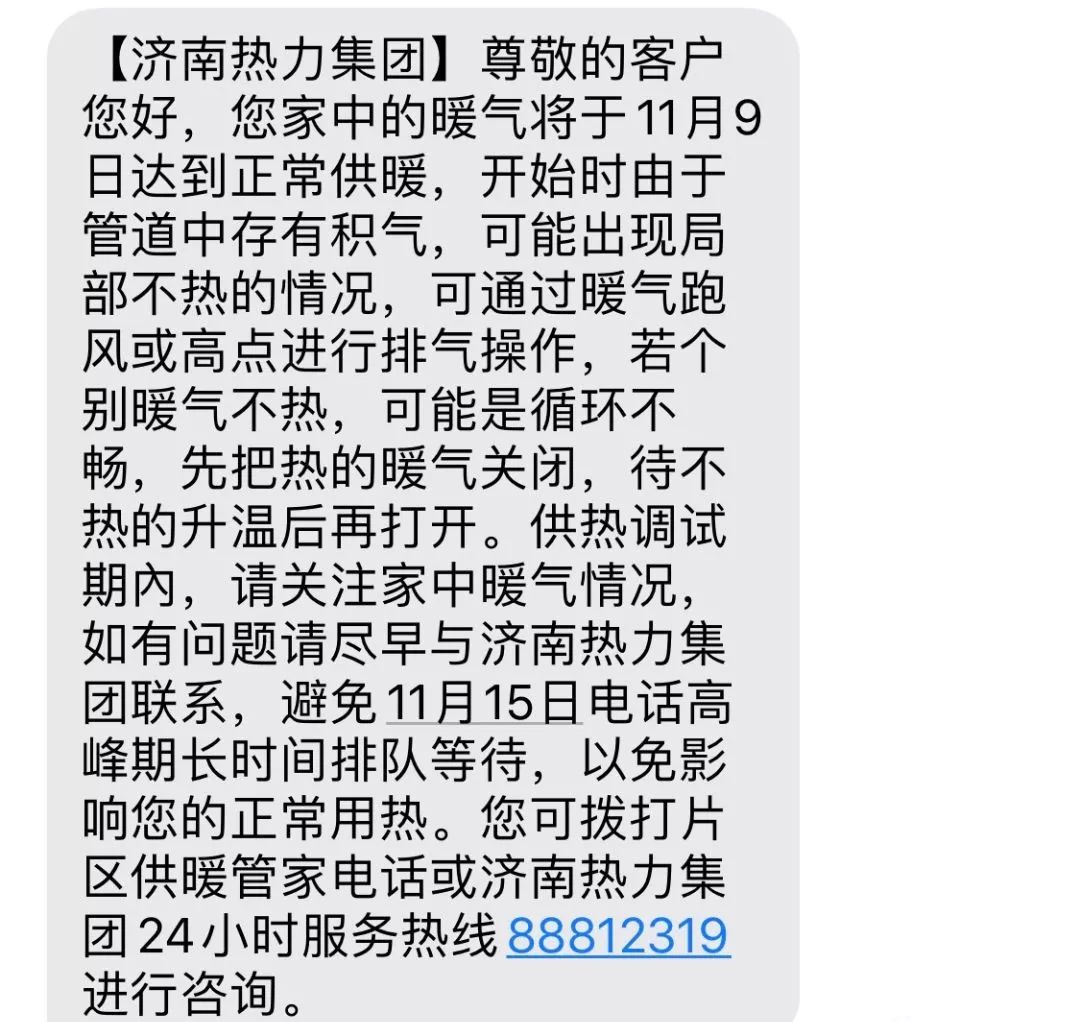 隨著試溫的開始,許多人也收到了熱力集團(tuán)的提示短信。