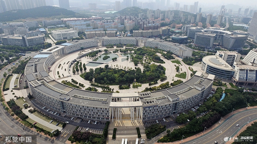 2017年9月9日,濟南,航拍齊魯軟件園大樓。 坐落于高新區的齊魯軟件園成立于1995年11月,1997年3月被國家科技部認定為全國首批"國家火炬計劃軟件產業基地"。齊魯軟件園大樓外形非常奇特,呈圓環狀,酷似著名的蘋果公司總部大樓,是泉城濟南的地標建筑之一。
