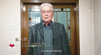 北京人民藝術(shù)劇院群星錄制抗疫視頻,圖為92歲高齡的藍(lán)天野在錄制中。資料圖片