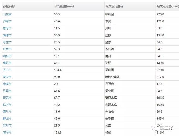 截止到8月19日下午12點(diǎn)40分,過(guò)去24小時(shí),山東全省平均降雨量為50.5毫米。將這些雨折合水量,大約相當(dāng)于下了近7000個(gè)大明湖!其中,市平均降雨量最大為濟(jì)寧市(134.4毫米);緊隨其后的是菏澤市,平均降雨量達(dá)到131.8毫米。全省最大點(diǎn)雨量出現(xiàn)在濟(jì)寧市梁山閘站(270.0毫米)。