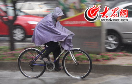 市民冒雨騎行。