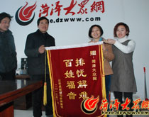 昨日,盡管天公不作美,小雨不斷,可是在大眾網(wǎng)和網(wǎng)友的幫助下,巨野果農(nóng)成功出售200余箱蘋(píng)果,總價(jià)值超過(guò)萬(wàn)元。今天上午,心存感激的果農(nóng)繩現(xiàn)橋來(lái)到大眾網(wǎng)菏澤站,送上了寫(xiě)著“排憂(yōu)解難,百姓福音”八個(gè)大字的錦旗。