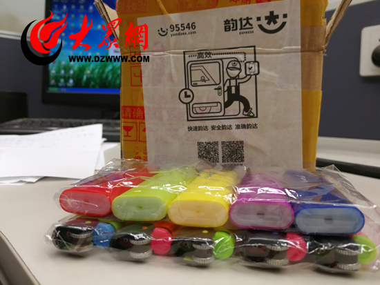 通過淘寶購買的10只裝滿易燃丁烷氣體的打火機(禁運品),借助韻達快遞,順利寄送到記者手中。