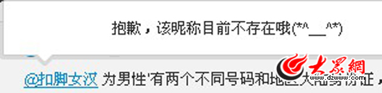 16日晚9點左右,大眾網記者發現,“@扣腳女漢”的微博賬號注銷。