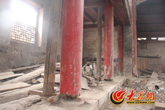 大眾網(wǎng)濟(jì)南4月17日訊(記者 李兆輝)“題壁堂,若不搶救維修,危在旦夕。”今天,有網(wǎng)友在大眾論壇上發(fā)布帖文和照片,呼吁相關(guān)部門“搶修”這座全省最大的古戲樓,因為它同時也是濟(jì)南市首批文物保護(hù)單位。今天,大眾網(wǎng)記者探訪這座“受傷”的古建筑發(fā)現(xiàn),由于疏于保護(hù),這座具有較高建筑藝術(shù)價值的210年的古建筑已變成了“廢品站”。