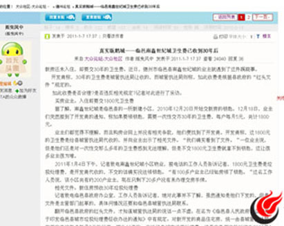 新房還未入住,竟要先交30年衛(wèi)生費(fèi)?近日,一位網(wǎng)友在大眾論壇發(fā)帖稱,德州市臨邑縣南鑫世紀(jì)城按照縣政府的“紅頭文件”規(guī)定,向業(yè)主預(yù)收30年的衛(wèi)生費(fèi),...