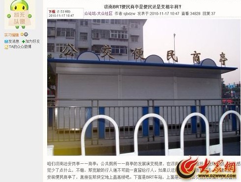 為解決市民出行問(wèn)題,濟(jì)南把主干道最重要的兩條車道拿出來(lái)專供BRT使用。然而,最近有網(wǎng)友發(fā)現(xiàn),全體市民“讓給”BRT的道路卻被公交公司拿來(lái)經(jīng)商了,一個(gè)個(gè)商...