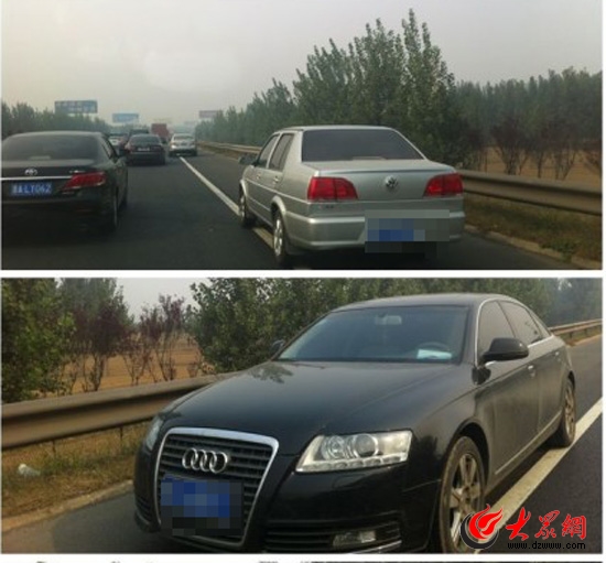 網(wǎng)友微博曝光在濟(jì)青高速上占用應(yīng)急車(chē)道的車(chē)輛。