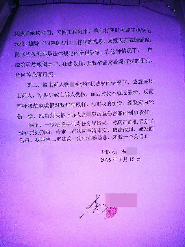 李某的上訴書(部分)