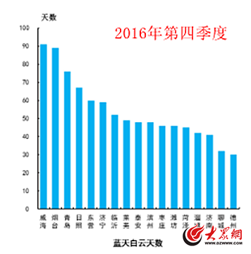 2016年山東“藍繁”天數(shù)增加34天,“氣質(zhì)”同比改善9.7%