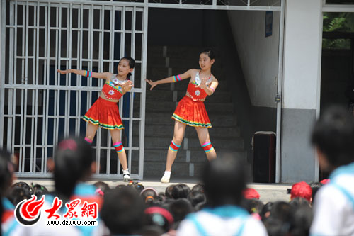 山東師范大學附屬小學的同學表演節目《爬坡上坎》
