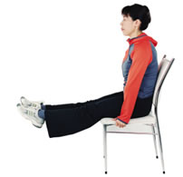 鍛煉腹部。握住椅子的把手,將雙腳并攏盡量地平伸向上抬起,可以鍛煉腹肌和大腿。(如圖)