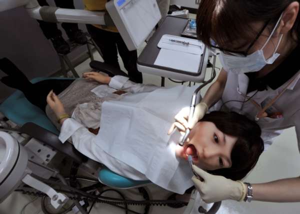 早稻田大學(xué)工學(xué)院和日本機(jī)器人制造商Tmsuk今天宣布了一款他們聯(lián)合研制的人形機(jī)器人,它用硅膠制造,看上去就像性玩偶,但實(shí)際上它有更偉大的功能,那就是幫助牙科實(shí)習(xí)醫(yī)生練練手。這款機(jī)器人不僅形態(tài)逼真會(huì)張嘴閉嘴,還可以像真人一樣有舌頭的動(dòng)作,還有搖頭、眨眼、咳嗽、打噴嚏、嗆到、轉(zhuǎn)眼睛等動(dòng)作,操作起來(lái)就和真人一樣。