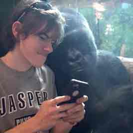▲世界那么大,給你看看照片吧。近日,在美國路易斯維爾動物園內,拍攝到有位男生,正在拿著手機,跟大猩猩分享自己手機照片(圖)。男生從網上找來其他大猩猩的照片,大猩猩很專心地等他逐張給它看。兩人像朋友一樣坐下來,大概一起看了二、三十分鐘~