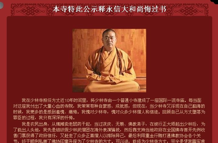 少林寺網(wǎng)站被黑 方丈釋永信稱是鞭策