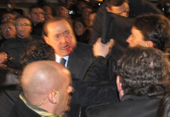 意大利總理貝盧斯科尼集會(huì)遭襲滿嘴流血