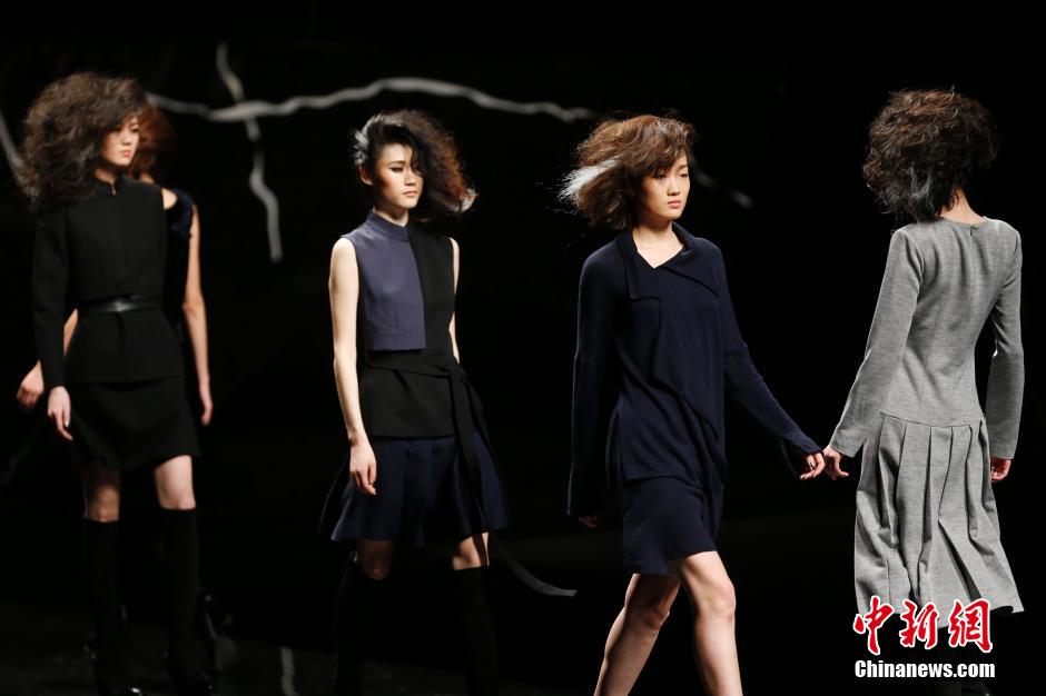 3月29日,正在北京舉行的中國國際時裝周上舉行“與狼共舞”男裝作品發布會,主題為“星夢.消失的PM2.5”,為臺灣歌手陶喆現場演繹“摘掉口罩,向霧霾宣戰”,設計師南志勛以自由倫敦圖案、蘇格蘭格紋圖案讓人聯想到叛逆時尚、亞文化感性強烈的90年代吉拉吉風潮強調自由與舒適的日常休閑款式,注重個人感性及滿足感的“街頭時尚”。圖為模特在中國國際時裝周T臺上展示潘怡良設計的時裝。中新社發 錢興強 攝