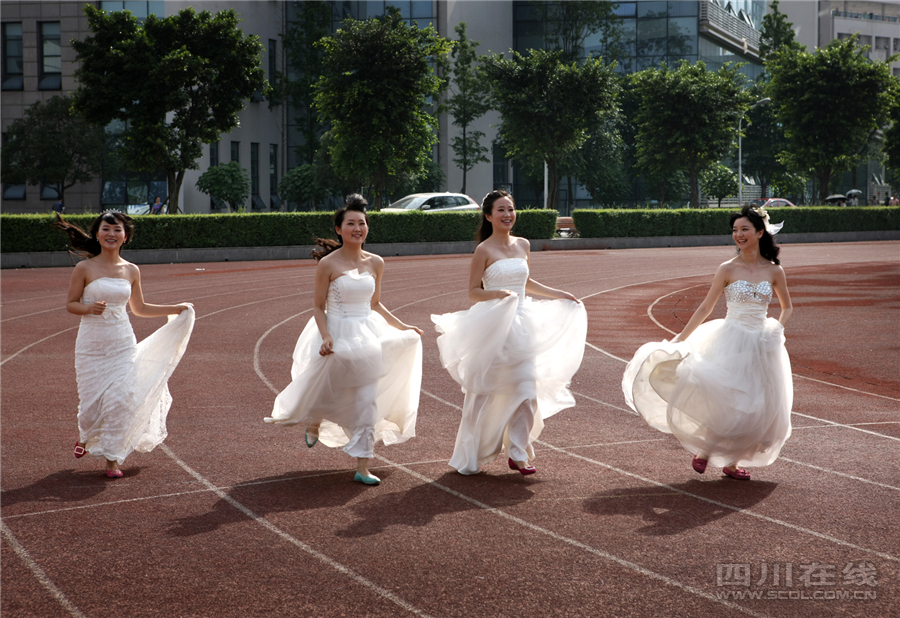 又到了一年鳳凰花開的時候,用什么樣的方式來紀念大學的青春歲月呢?今日下午,四川農(nóng)業(yè)大學成都校區(qū)的校園里,4位身著白色婚紗在校園里拍照的姑娘吸引了大家的目光。原來她們是該校農(nóng)學院即將畢業(yè)的研究生,自2007年入學后,一直在同寢室共同度過了人生中最美好的7年。如今,在畢業(yè)之際,她們也許下了美好的愿望:希望拿到碩士畢業(yè)證后,下一個證就領(lǐng)結(jié)婚證。