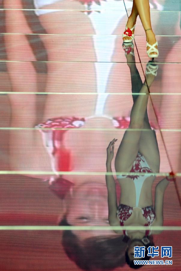 模特身著泳裝在閉幕式上表演(8月17日攝)。 8月17日晚,以“美麗引領時尚、夢想點亮生活”為主題的首屆中國(葫蘆島·興城)國際泳裝文化節在遼寧葫蘆島舉行閉幕式。新華社發(李雨澤攝)