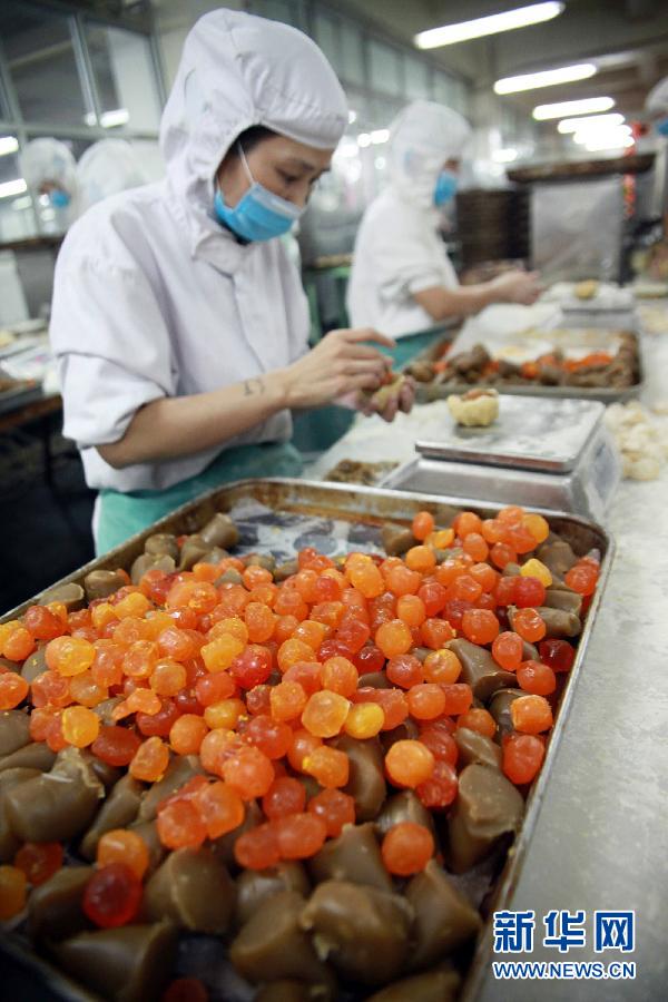 8月25日,北京稻香村工人在手工制作月餅。中秋節臨近,北京老字號稻香村正加緊趕制月餅,以滿足市場需求。據了解,除傳統的自來紅、自來白、八珍、蘇式月餅等品種外,稻香村今年推出了紅柿果蓉、南瓜馬蹄、無花果蓉、麻辣牛肉月餅等新口味,許多月餅品種仍采用手工制作的老手藝,保留了月餅的獨特品相與優質口感。稻香村今年計劃總產量為2600噸,同比增長13%。新華社發(陳曉根攝)