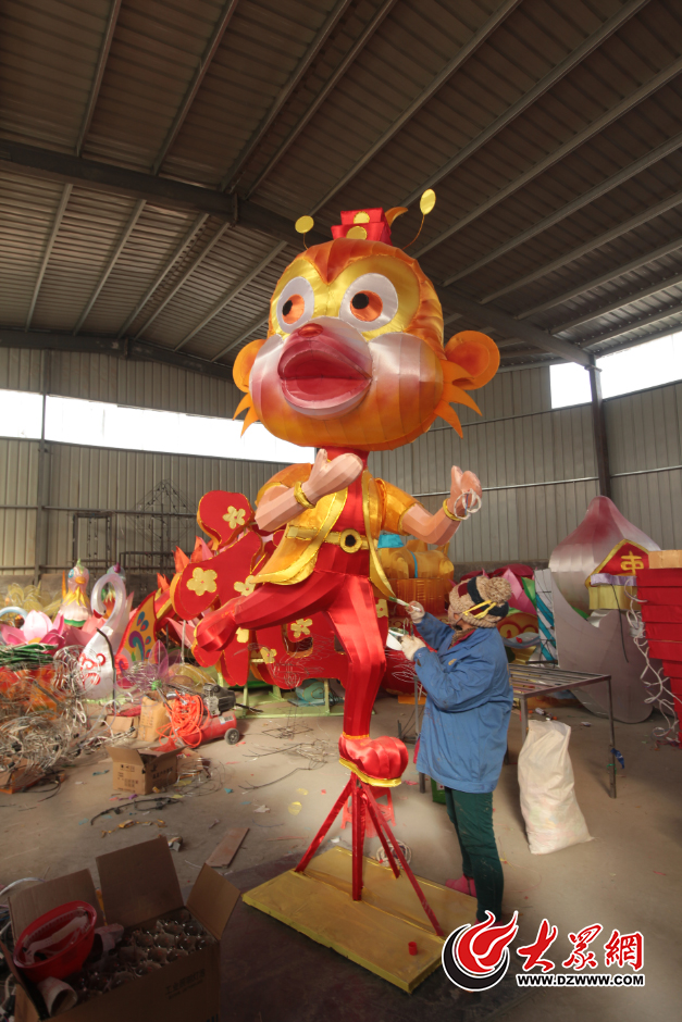 1月14日,隨著猴年春節(jié)臨近,在位于濟(jì)南市中區(qū)黨家莊的迎春花燈會(huì)制作基地,工人們正在緊鑼密鼓地進(jìn)行花燈扎制工作,到處是已經(jīng)扎成半成品的花燈。大眾網(wǎng)記者 王長坤 攝