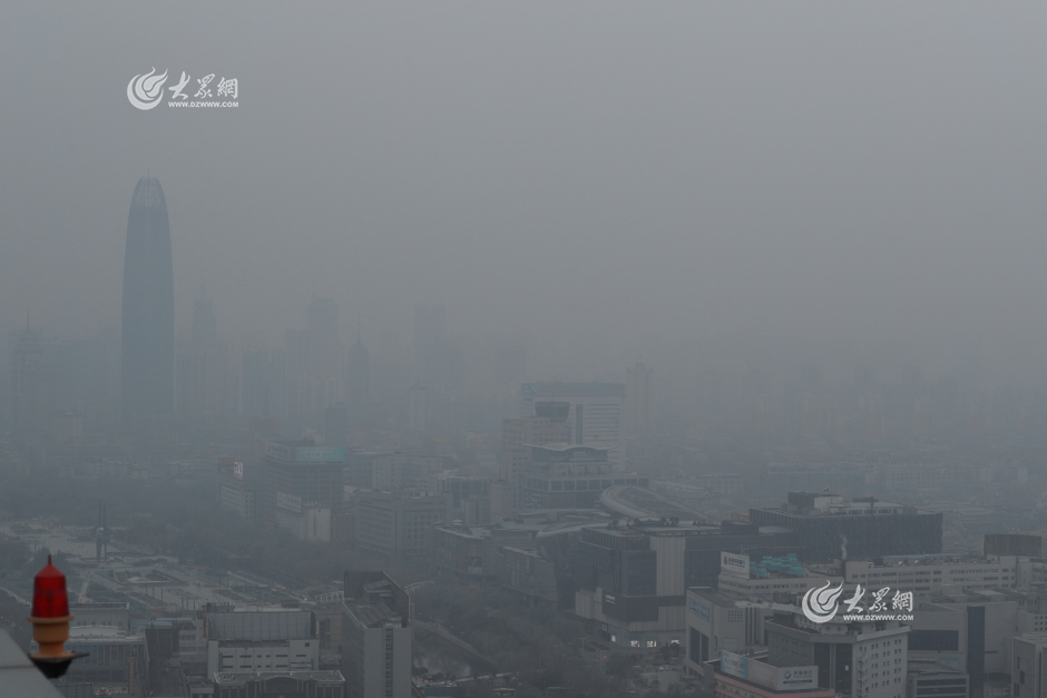 12月12日,濟(jì)南,整個城市都籠罩在一片灰蒙蒙之中。早晨8點(diǎn)30分,大眾網(wǎng)記者從150米高空俯瞰下去,遠(yuǎn)方的天空一片朦朧,好像遮擋了一層灰色玻璃。 大眾網(wǎng)記者 王長坤 攝