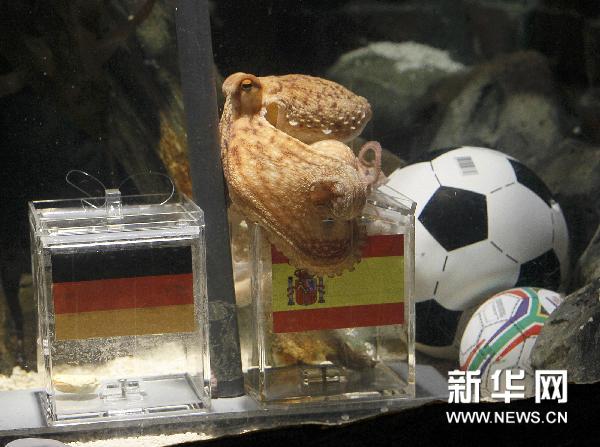 7月6日,在德國奧伯豪森的一家海洋館里,已經成功“預測”多場世界杯比賽勝負的兩歲章魚“保羅”再度出山。只是這一次,在德國隊與西班牙隊誰將在半決賽中取勝這個問題上,“保羅”站在了西班牙一邊。新華社/路透