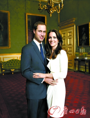 即將大婚的威廉王子和他的未婚妻凱特。 老婆,要好好表現(xiàn),王室存活就看我們的了!(設(shè)計(jì)對(duì)白)