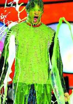 頒獎嘉賓星光熠熠,有“老人家”布萊德·彼特、米歇爾·菲弗、金·凱瑞、以及布蘭妮、賈斯汀等,《王牌大賤諜》的主演邁克·邁爾斯,《神探俏嬌娃》中的三位靚女祖莉·芭莉摩爾、劉玉玲、卡梅倫·迪亞茲,都有出席捧場。祖莉·芭莉摩爾還在頒獎中不顧儀態地狂吃面條,搞活現場氣氛。頒獎中的慣性淋油今年就由“變相怪杰”金·凱瑞表演,他任由綠色粘液照頭淋也絕不抱怨,毫不介意。